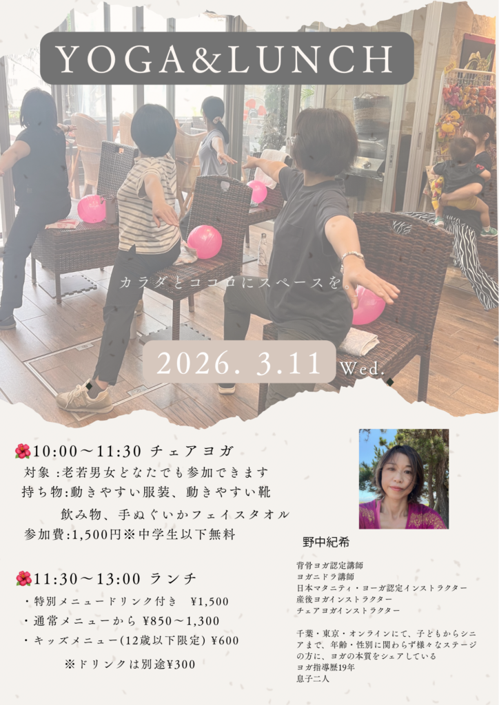 今回の企画は、ヨガとランチがセットです。